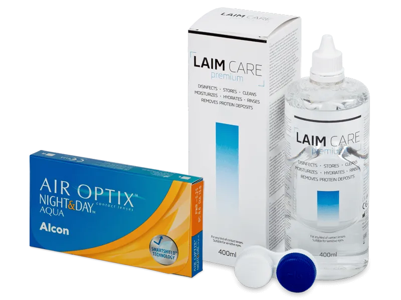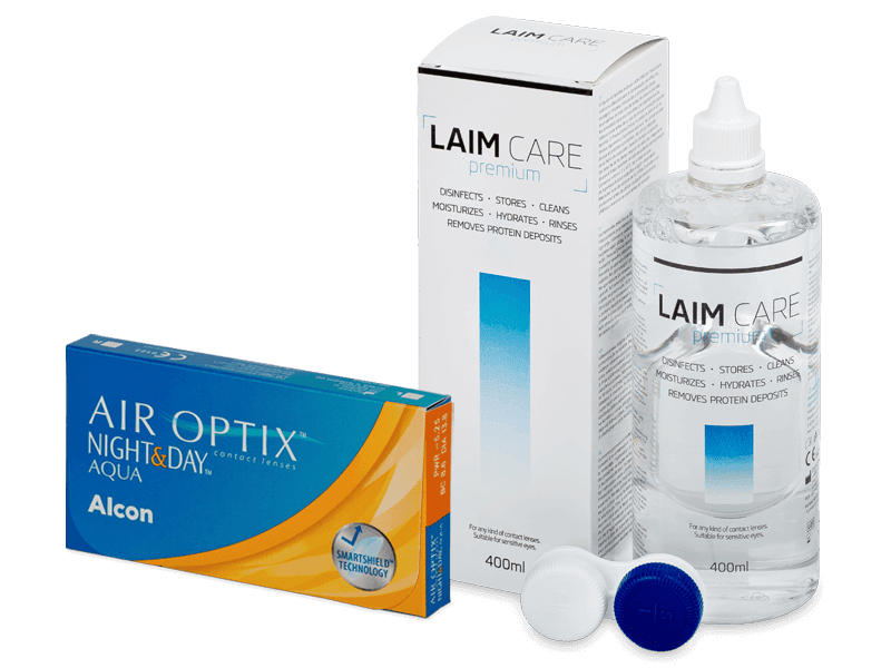Air Optix Night and Day Aqua (6 šošoviek) + roztok Laim Care 400 ml